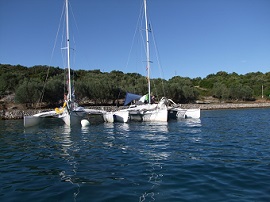 Die Törns in der Adria werden auf einem Corsair Trimaran oder einem NEEL 47 gefahren. Die Qualitäten des Corsair Trimarans liegen in seinen Segelleistungen. Der Wohnraum unter Deck ist spartanisch, aber funktionell.